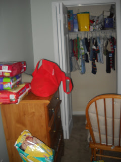 The flooring is supposed to arrive today and if all goes according to plan, will be installed this weekend. The giant bookcases will be taken to storage to be used in Dean's new office come August, and the futon will stay in the room for overnight guests (especially Mema, who will be staying for a week or two after he's born... I'm so thankful!!!!). Then we'll just have to get the rest of the baby furniture out of hiding in the garage, clean it all up, set it up, and baby Ty is free to arrive! I will keep you updated on our progress.